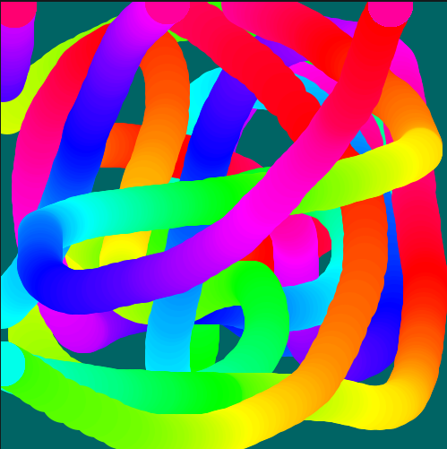 Um exemplo visual, em que as cores são definidas pelo matiz, com um número que vai de 0 a 255 e volta para o 0, calculado a partir do resto da divisão do número do quadro (frame_count) por 256.
