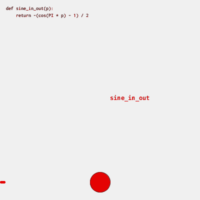 Vejamos um exemplo que fizemos inicialmente na explicação do remap() de um círculo que anda e vai de preto para branco, mas agora usando lerp() e uma função de easing exponencial 'sigmóide', na saída e na chegada(in e out).