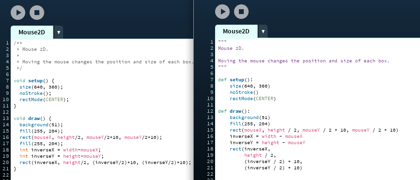 Dicas para portar código de Processing modo Java para modo Python