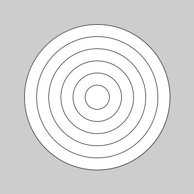 circle(200, 200, d) # desenha a cada volta um círculo o diâmetro `d` da vez