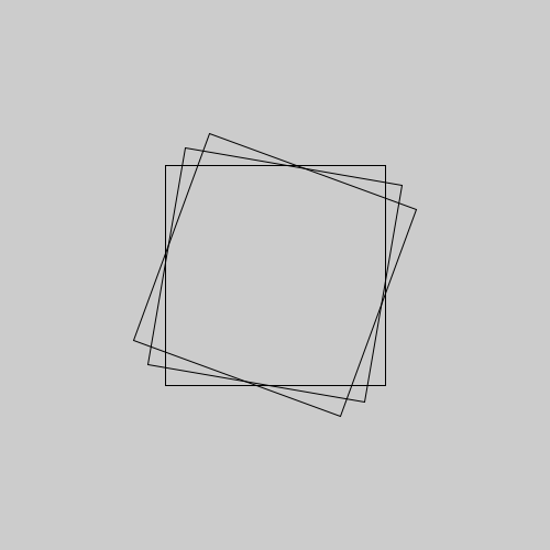 O artista pioneiro da arte computacional Georg Nees tem uma obra "Schotter" (1968-1970), cujas formas podemos tentar recriar com os quadrados girados e um aumento gradual de deslocamentos e rotações usando random().