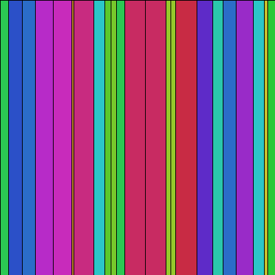 Note que neste exemplo, muito simples, não garantimos que não teremos posições sobrepostas. Isto pode ser resolvido consultando se a posição "sorteada" já existir na estrutura de dados. Para listas isso é algo não eficiente. Veja o exemplo a seguir, que resolve este problema, mas se trata de um desenho diferente, e a não-sobreposição é a única restrição.