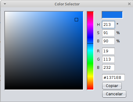 Se chamaramos a função colorMode com a constante HSB, colorMode(HSB), podemos passar a usar números representando Matiz (Hue), Saturação (Saturation) e Brilho (Brightness).