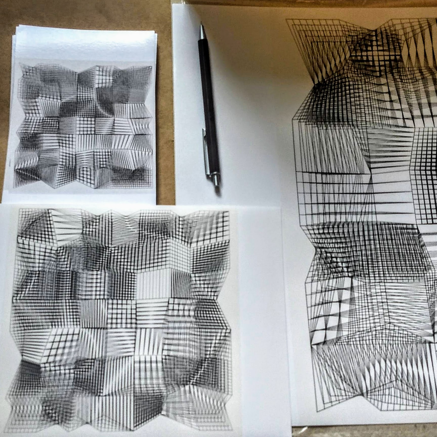 Têm como princípio uma sequência de procedimentos que deformam duas grades de quadrados com múltiplas subdivisões, interpolando grades intermediárias, produzindo estruturas gráficas de leitura tridimensional.